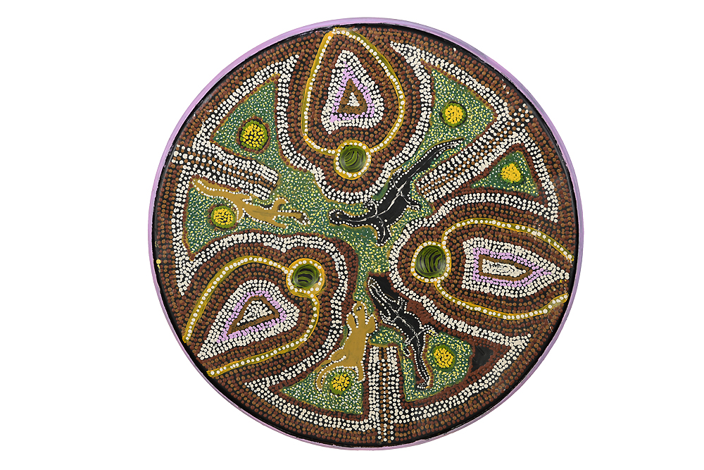 acrylic paint on found object; 58 cm Ø