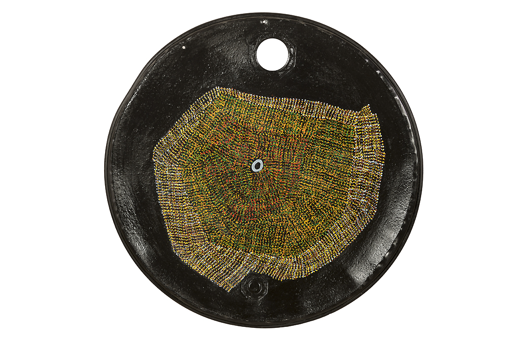 acrylic paint on found object; 59.5 cm Ø