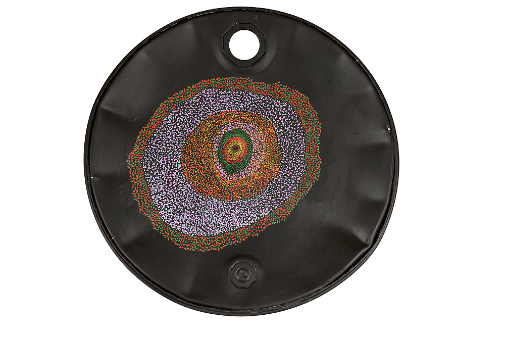 acrylic paint on found object; 59 cm Ø