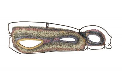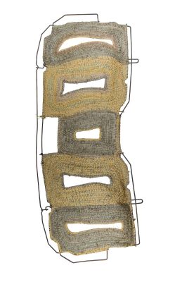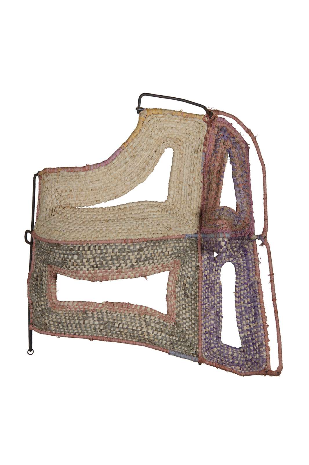 Deborah Umula, Shapes from Country, Wangunu (native grass), found car seat frames & hand dyed raffia, 67 x 45.5 x 24