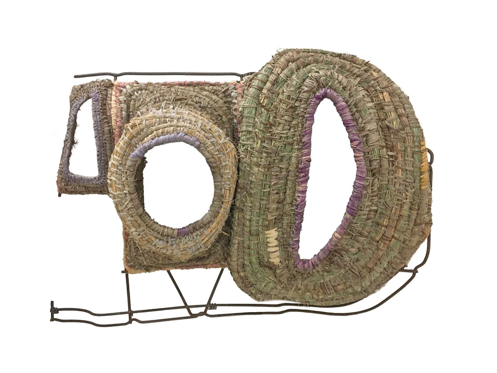 Margaret Dodd, Shapes from Country, Wangunu (native grass), found car seat frames & hand dyed raffia, 25 x 66 x 13