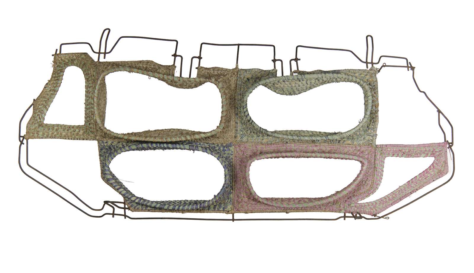 Margaret Yai Yai, Shapes from Country, Wangunu (native grass), found car seat frames & hand dyed raffia, 54.5 x 127.5 x 18