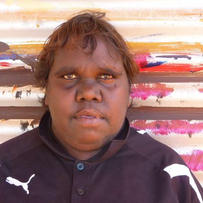 Sabrina Nangala Robertson was born in Mparntwe (Alice Springs) and grew up in Yuendumu attending the local school there. She moves between Yuendumu and Mparntwe and has been painting with Warlukurlangu Artists since 2005. She paints her father’s Jukurrpa or Dreaming, stories passed down to her by her father. These stories relate to her traditional land, Pirlinyarnu (Mt Farewell), its features and the plants and animals that inhabit it.