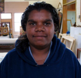Stacey Davis was born in 1981 and her Country is Sandy Bore in Central Australia. Stacey is following in her mother, Therese Davis’ footsteps. She is one of Keringke’s young emerging artists and is adapting her family’s painting with new interpretation in colour and design. Stacey works to reflect the patterns that she finds in her landscape and to layer them in ways that provide a view of her unique Arrernte perspective of the world, reflecting her world view of land, people, plants and animals as one continuous being connected by energy.